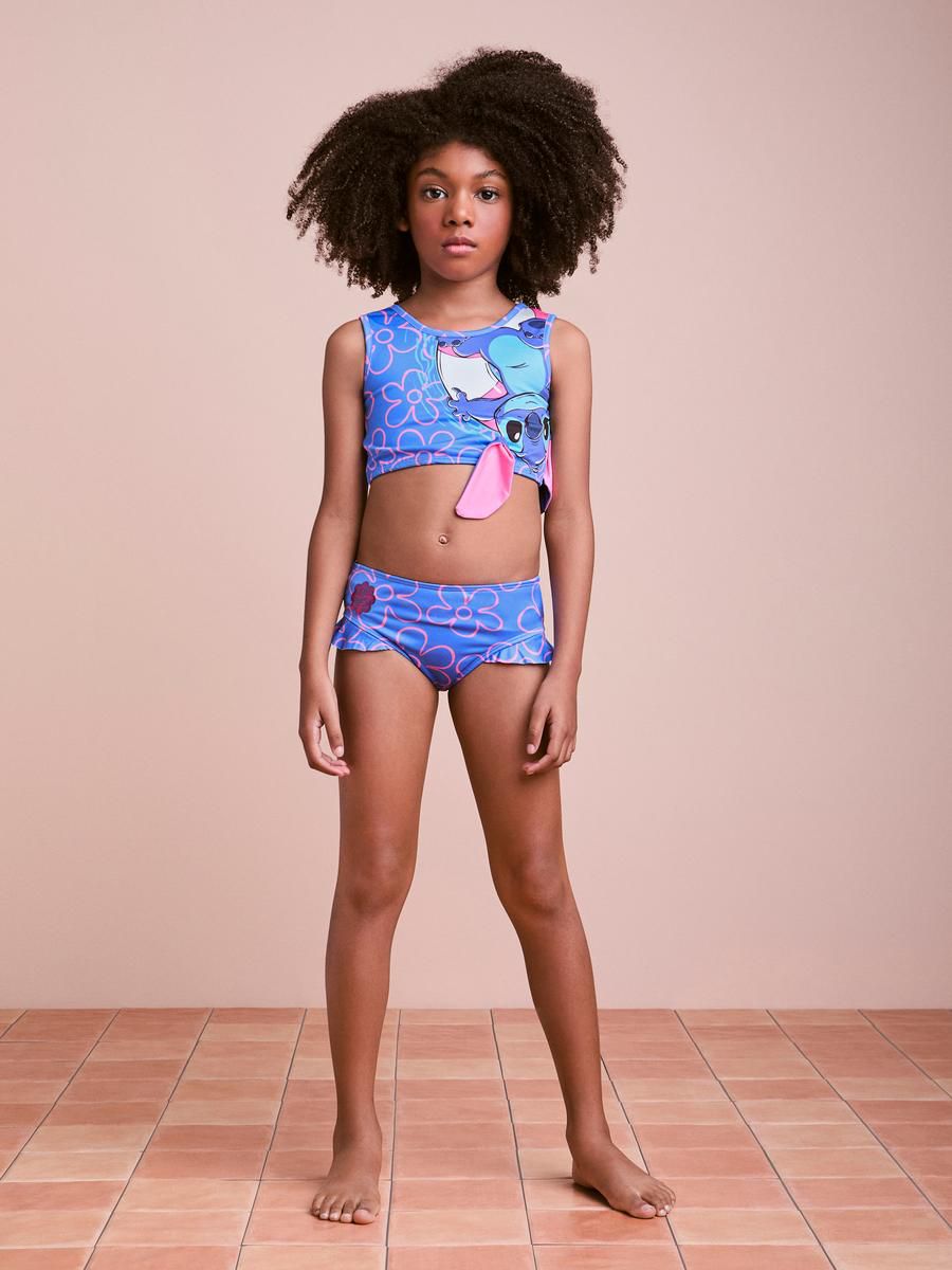 Fofo e divertido, o biquíni Stitch encanta pelo design lúdico com orelhinhas aplicadas. Uma peça cheia de personalidade que combina conforto e alegria, perfeita para dias de praia e piscina com muito estilo. Ref.: Q0416