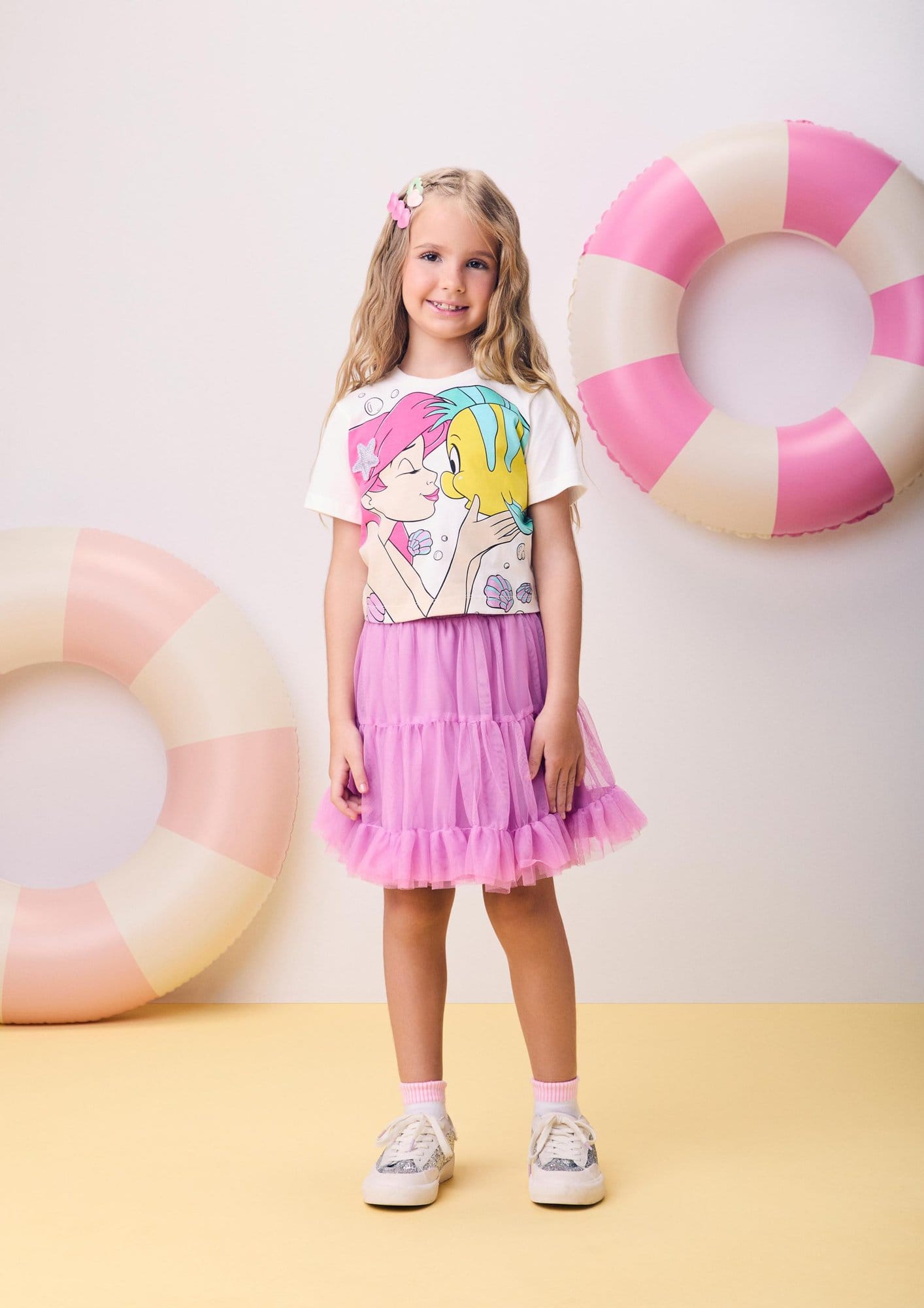 Com muito charme e doçura, essa blusa traz uma estampa maxi da Ariel e do Linguado, transmitindo alegria e fantasia. O detalhe especial fica por conta da aplicação de uma estrela com glitter prateado, que adiciona brilho na medida certa. Modelagem confortável e toque super macio, perfeita para acompanhar as pequenas em qualquer aventura. Ref.: H6350