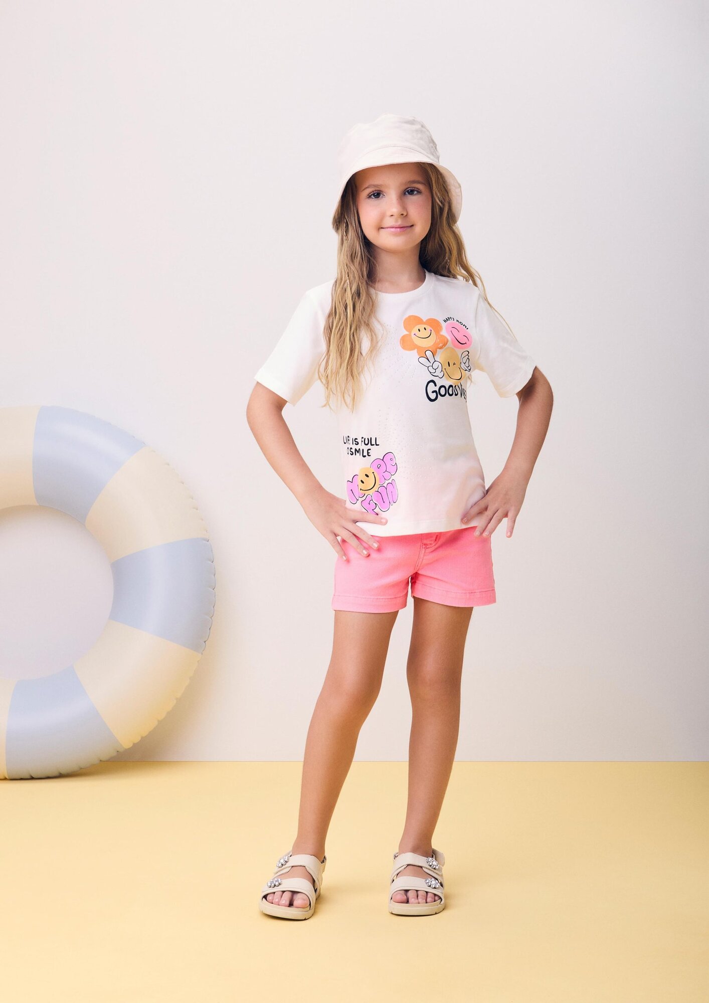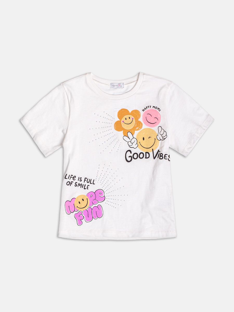 Perfeita para espalhar alegria por onde passar! A blusa traz estampa de smile com detalhes florais, além de aplicação de strass que adiciona brilho e deixa o visual ainda mais fofo. Modelagem confortável, com tecido leve e caimento perfeito. Ref.: H6362