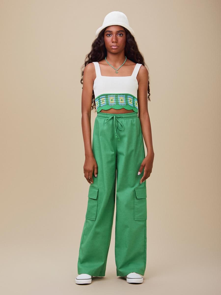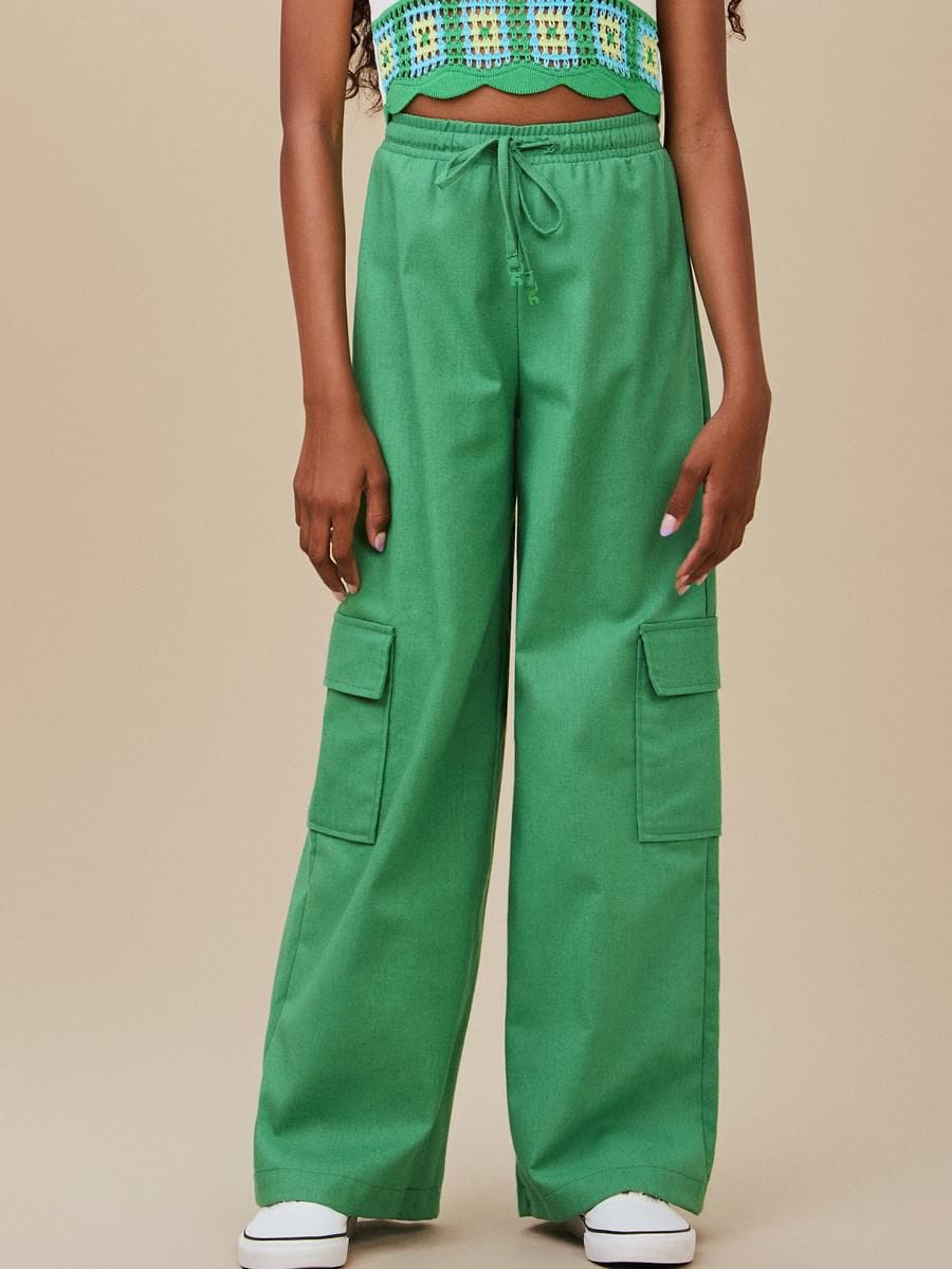 CALÇA CARGO DE LINHO VERDE