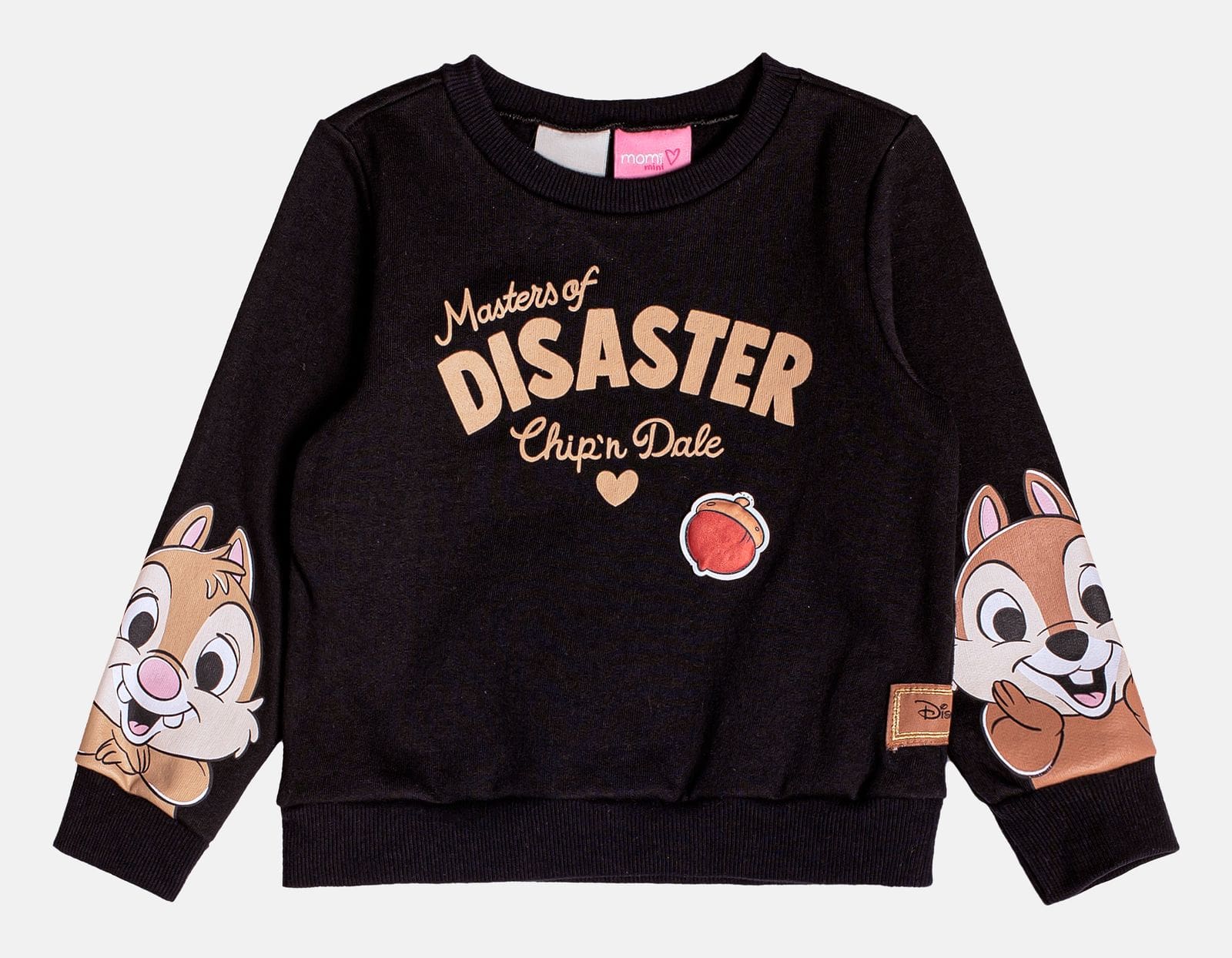 Cheio de diversão, este moletom preto destaca os personagens Tico e Teco com detalhes criativos nas mangas. Perfeito para momentos descontraídos com um toque especial. Ref.: J6199