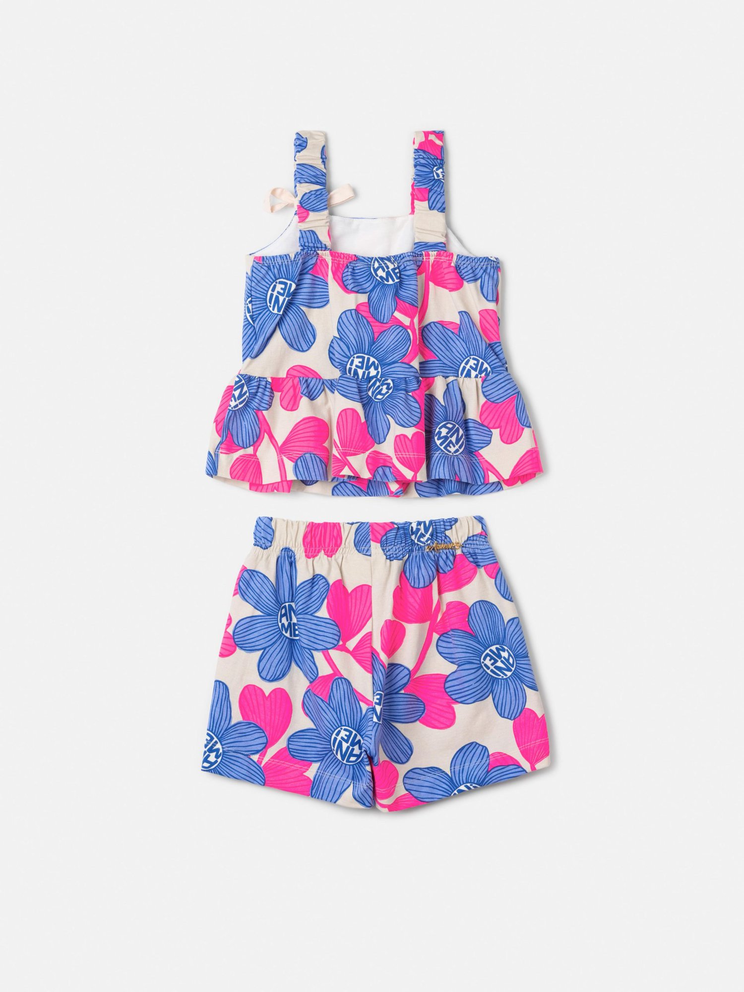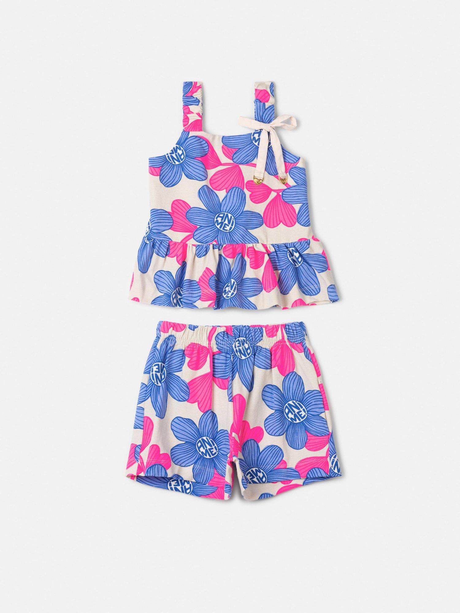 O frescor do visual floral e o charme do peplum transformam este conjunto infantil em um destaque de feminilidade. Composto por uma blusa de alças com detalhe de sianinha e um short com elástico na cintura, é uma peça que equilibra leveza e sofisticação, perfeita para momentos especiais. O caimento confortável e o design cuidadoso refletem o DNA lúdico e fashion da Animê. Ref.: N5340