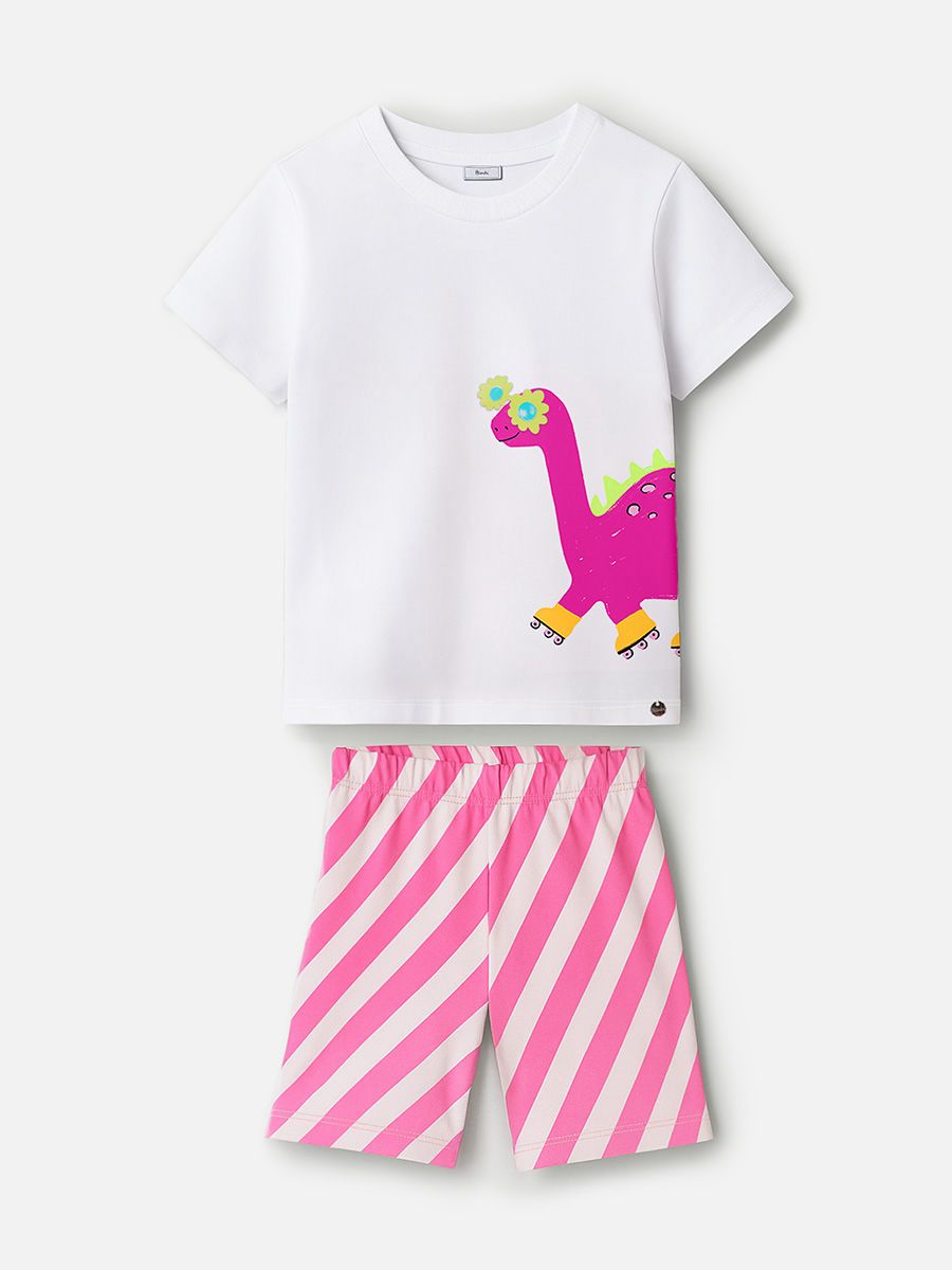 O conjunto infantil listrado de dinossauro traz um visual divertido e cheio de energia. A estampa de dinossauro, acompanhada de listras vibrantes, cria um look moderno e aventureiro. Ideal para os pequenos que adoram explorar, este conjunto oferece conforto e estilo para os dias mais descomplicados. Ref.: FA321