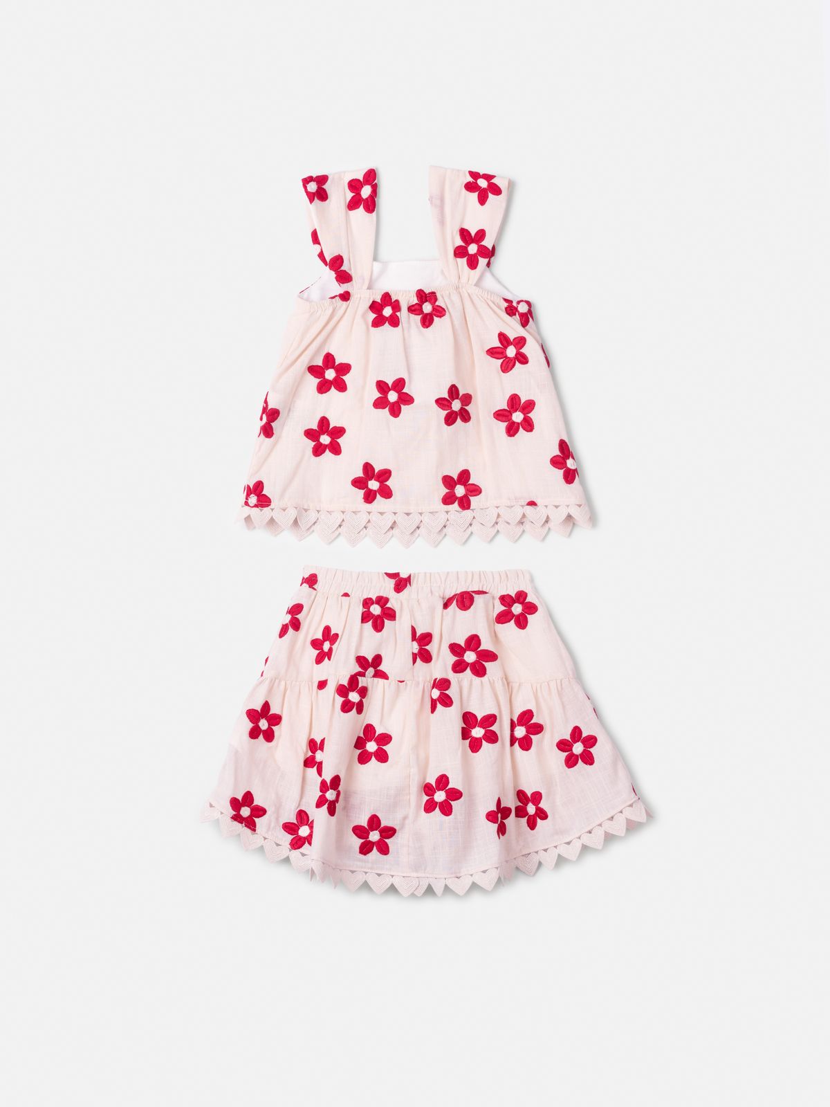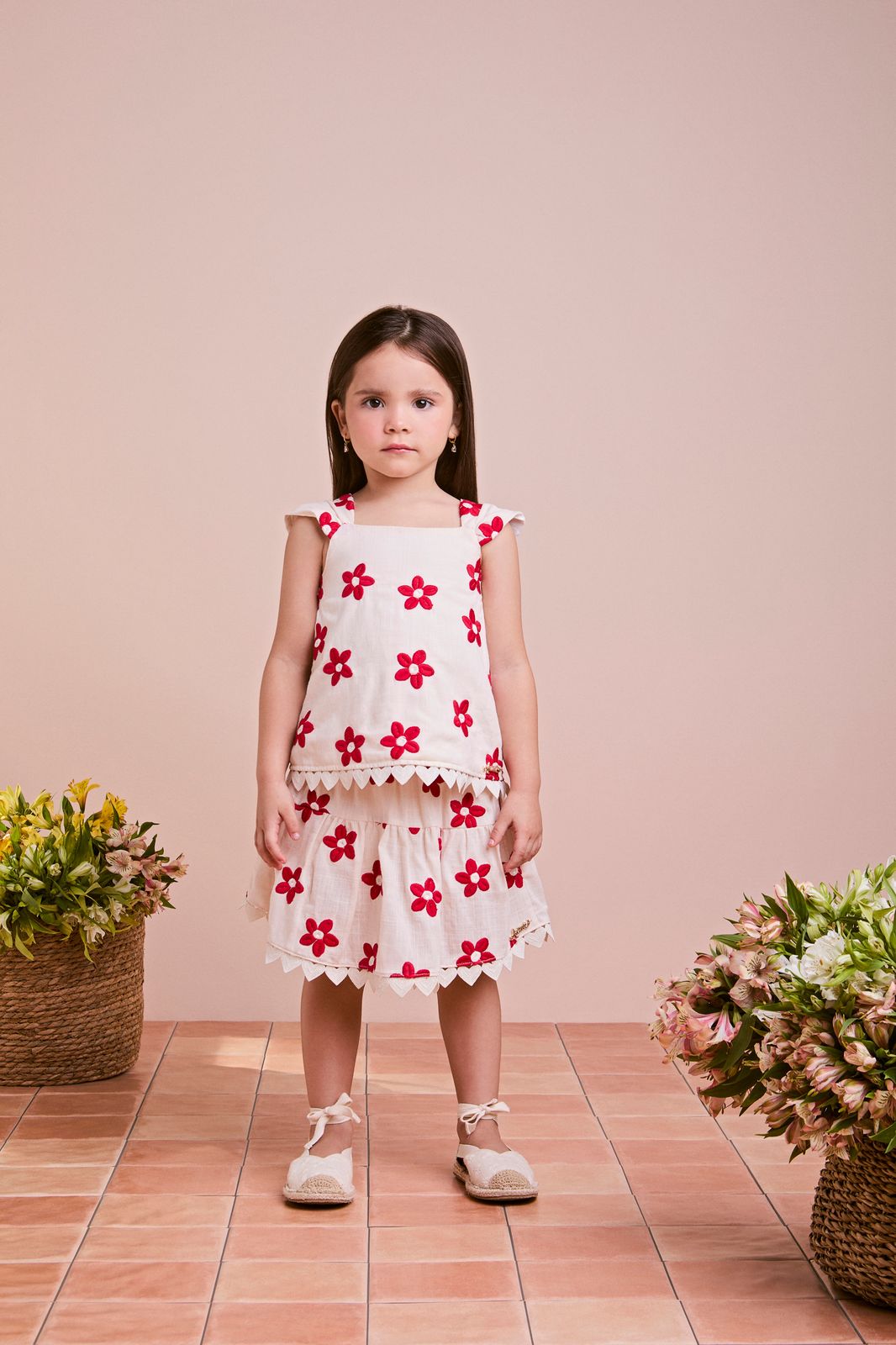 CONJUNTO COM FLORES BORDADAS E RENDA
