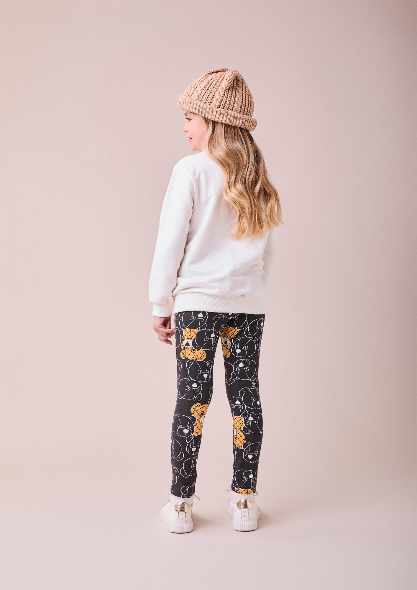 O conjunto “Super Cute Bear” traz um moletom branco com detalhes encantadores: estampa de bolsa com pingente de ursinho 3D super fofo. Acompanha uma calça legging preta com estampa exclusiva de ursinhos amarelos e pretos. Ideal para um look moderno e divertido, é a escolha certa para dias cheios de estilo. Ref.: H6134