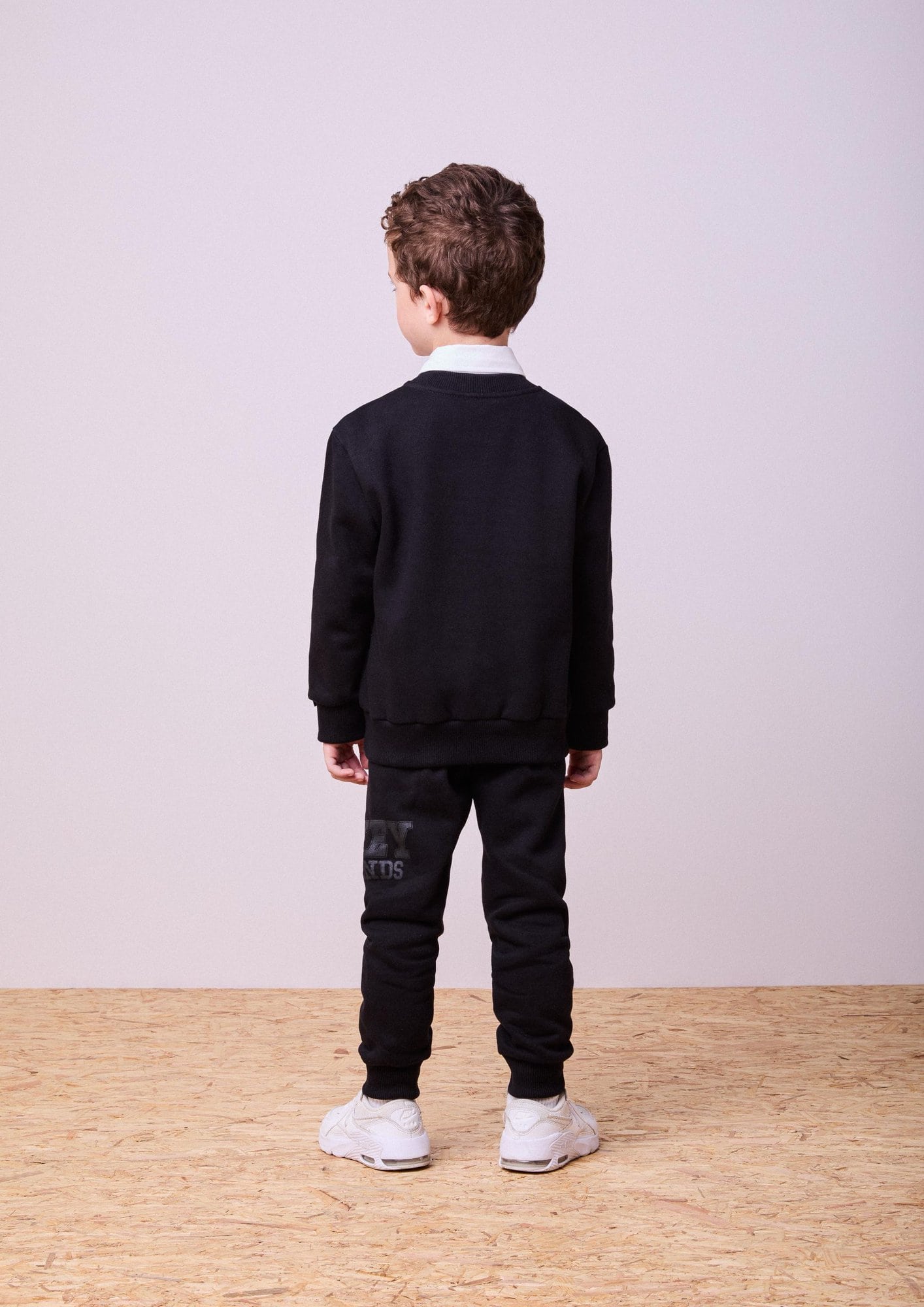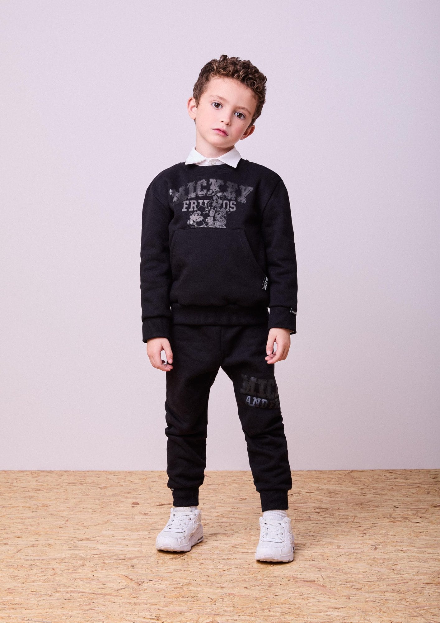 Um visual moderno com um toque especial da turma do Mickey! A blusa preta com bolso canguru e estampa texturizada confere estilo, enquanto a calça preta com cós elástico e detalhe de lettering na perna completa o look. Ideal para ocasiões casuais com muito conforto. *Não acompanha golinha. Ref.: I2099