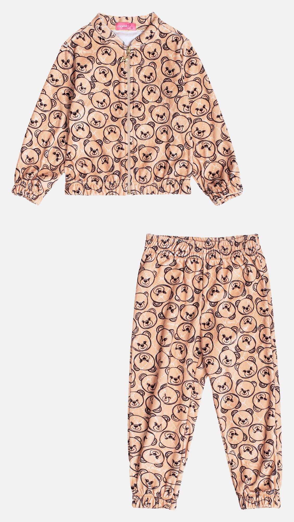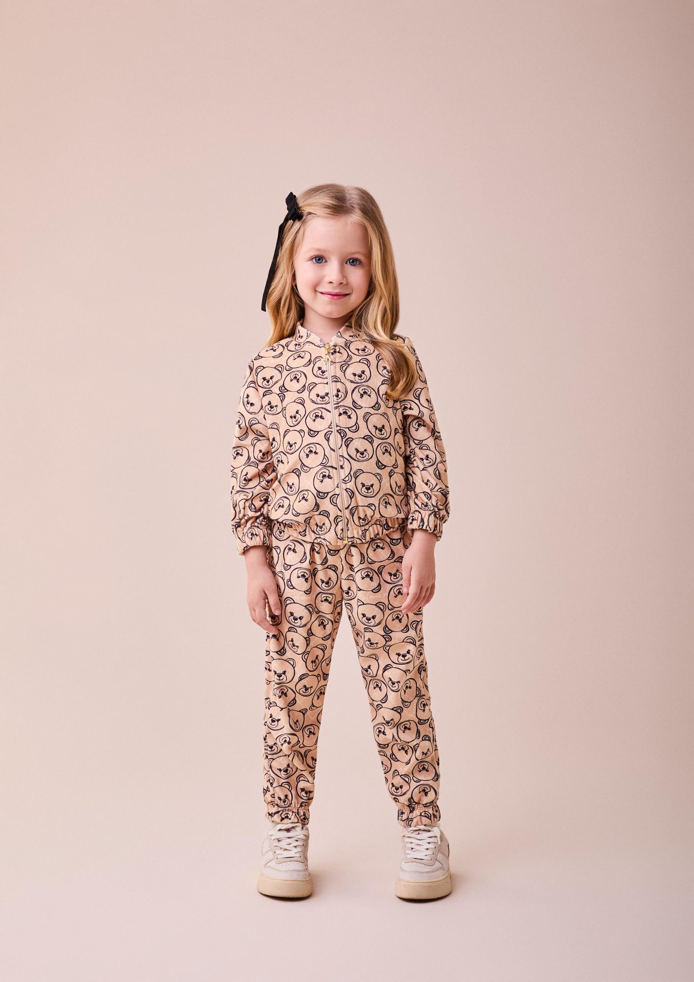 Transforme o estilo das pequenas com este conjunto repleto de charme! Com uma jaqueta de zíper e calça confeccionadas em tecido macio e estampas exclusivas de ursinhos, este conjunto é a escolha perfeita para dias de conforto e diversão. Os detalhes de acabamento e a modelagem moderna garantem um visual adorável e cheio de personalidade. Ideal para composições casuais que valorizam a delicadeza infantil. Ref.: J6794