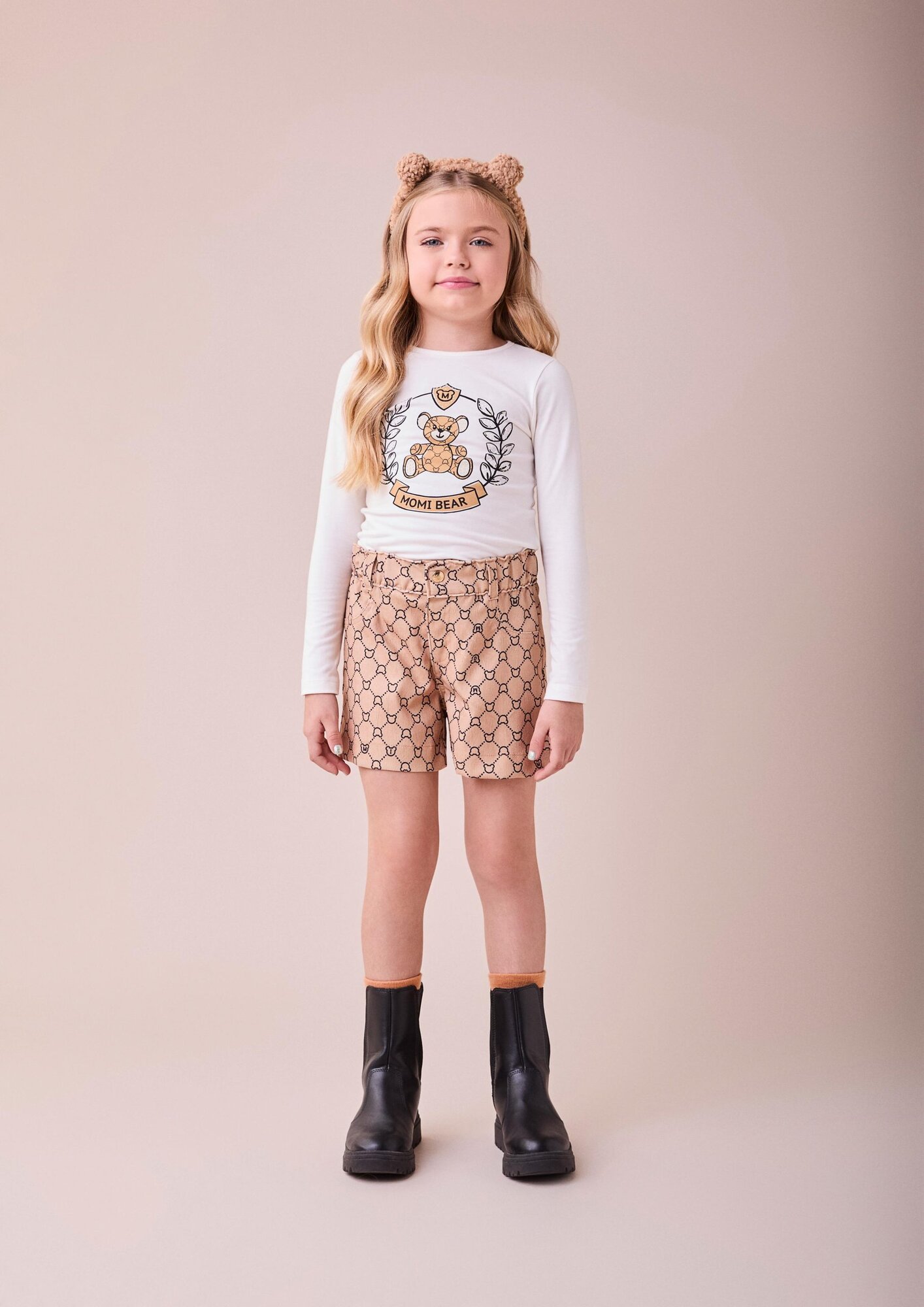 Este fofo e leve! A blusa de manga longa com estampa de urso e o short bege geométrico são a escolha ideal para momentos descontraídos. Ref.: H6513