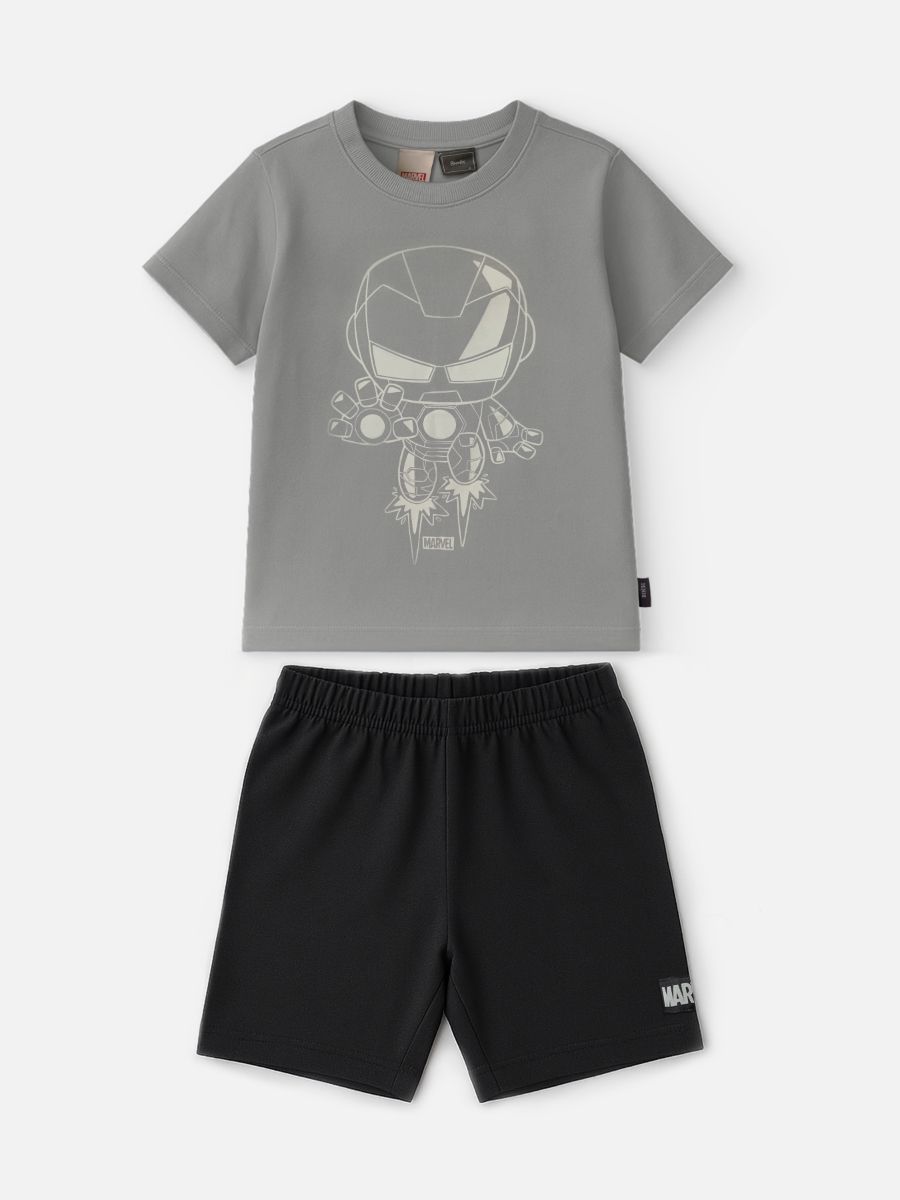 Prepare-se para a diversão com esse conjunto cheio de atitude! A camiseta em tom cinza traz estampa estilizada do herói Iron Man, perfeita para os pequenos fãs da Marvel. Super confortável, com toque macio e caimento leve, ela é ideal para acompanhar todas as brincadeiras. O short preto com o logo MARVEL aplicado na perna combina com tudo e oferece liberdade total de movimento. Feito em tecido maleável e resistente, é perfeito para o dia a dia dos pequenos heróis. Ref.: GA191