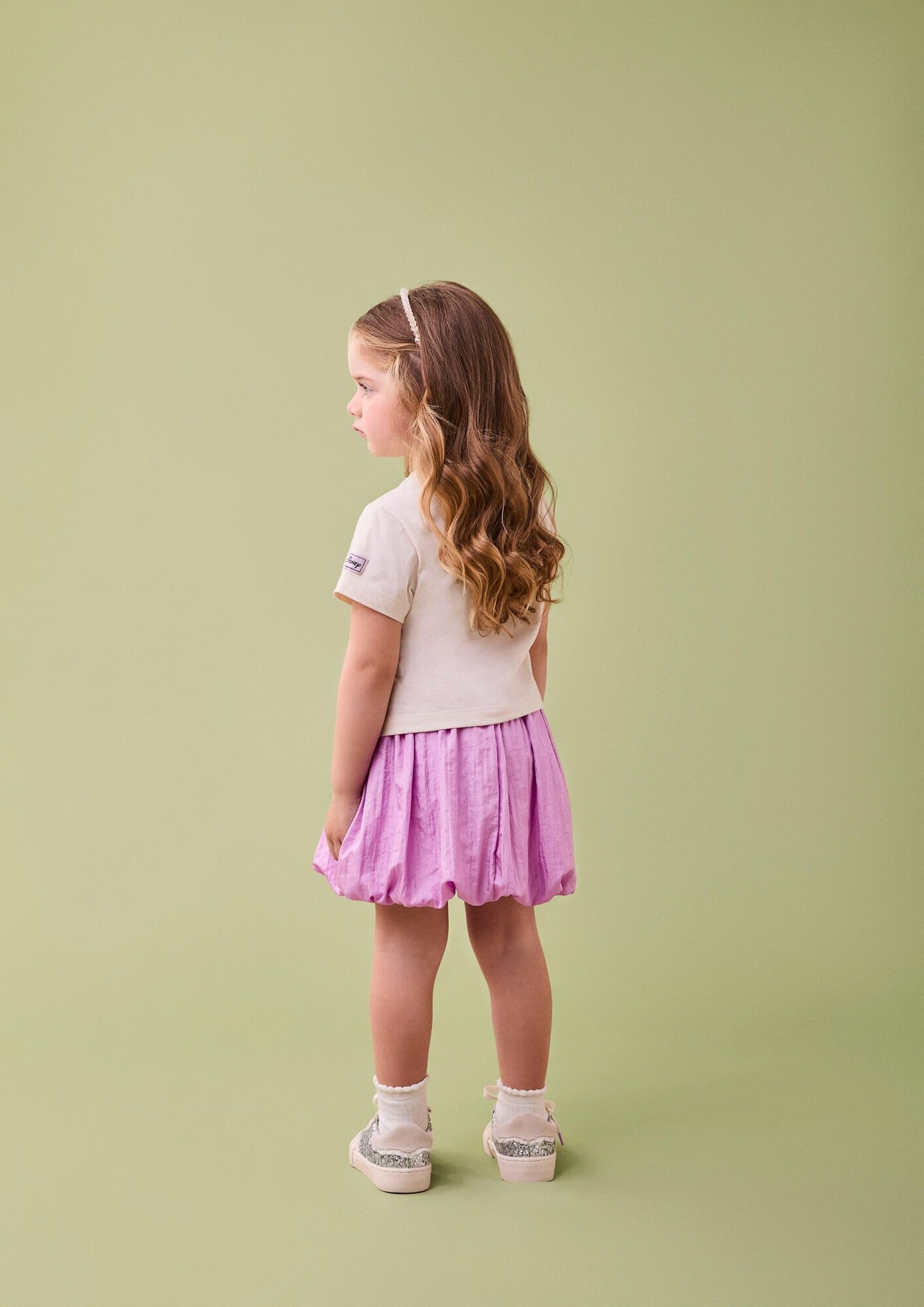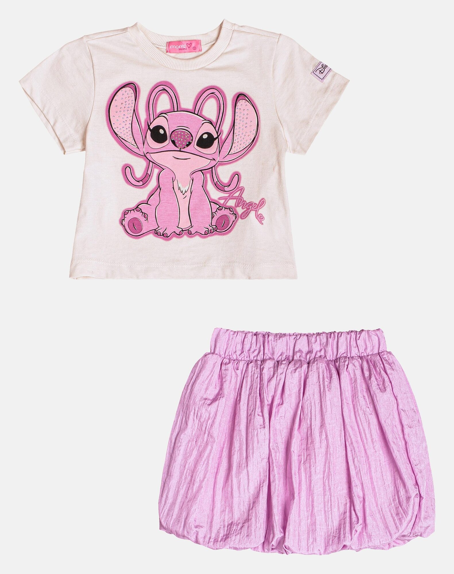 Este com a personagem mais amada do momento, o conjunto off white da Momi estampa a Angel em traço delicado e expressivo. O toque especial fica por conta dos strass aplicados, que dão brilho na medida certa. A saia balonê rosa traz uma leitura fashionista e divertida para os looks da estação. Ideal para compor looks modernos e apaixonantes com conforto e estilo. Ref.: J6190