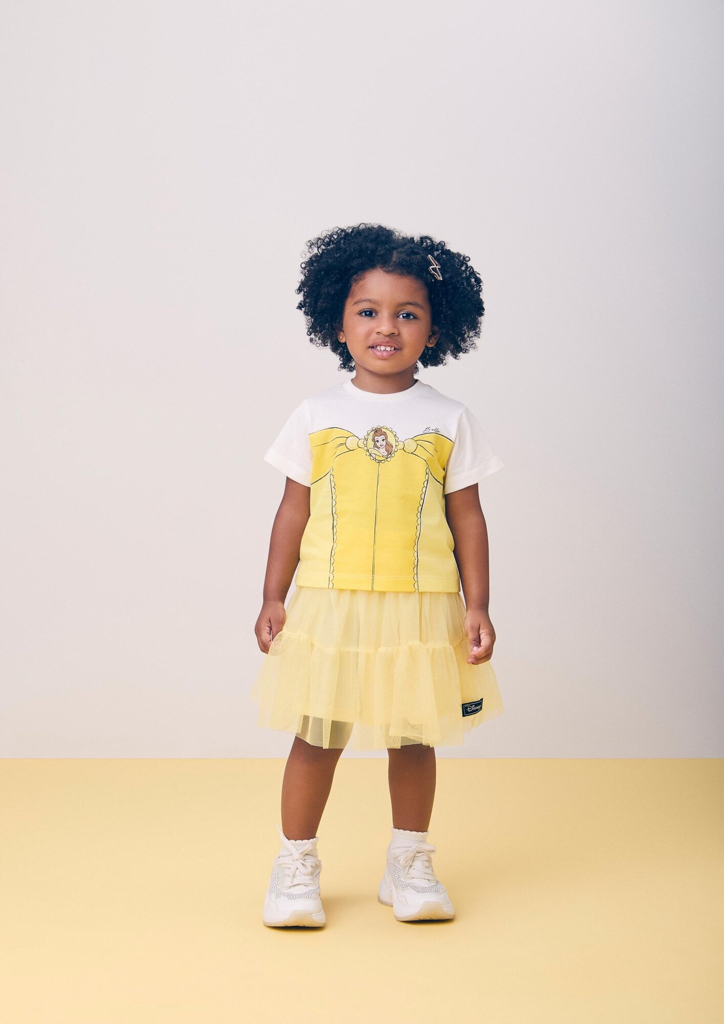 Inspirado na beleza dos contos de fadas! A blusa traz estampa da Princesa Bela com detalhes delicados e toques brilhantes. Acompanhando, a saia de tule amarelo, inspirada no clássico vestido da personagem, traz leveza, movimento e um visual encantador, perfeito para momentos mágicos. Ref.: J6833