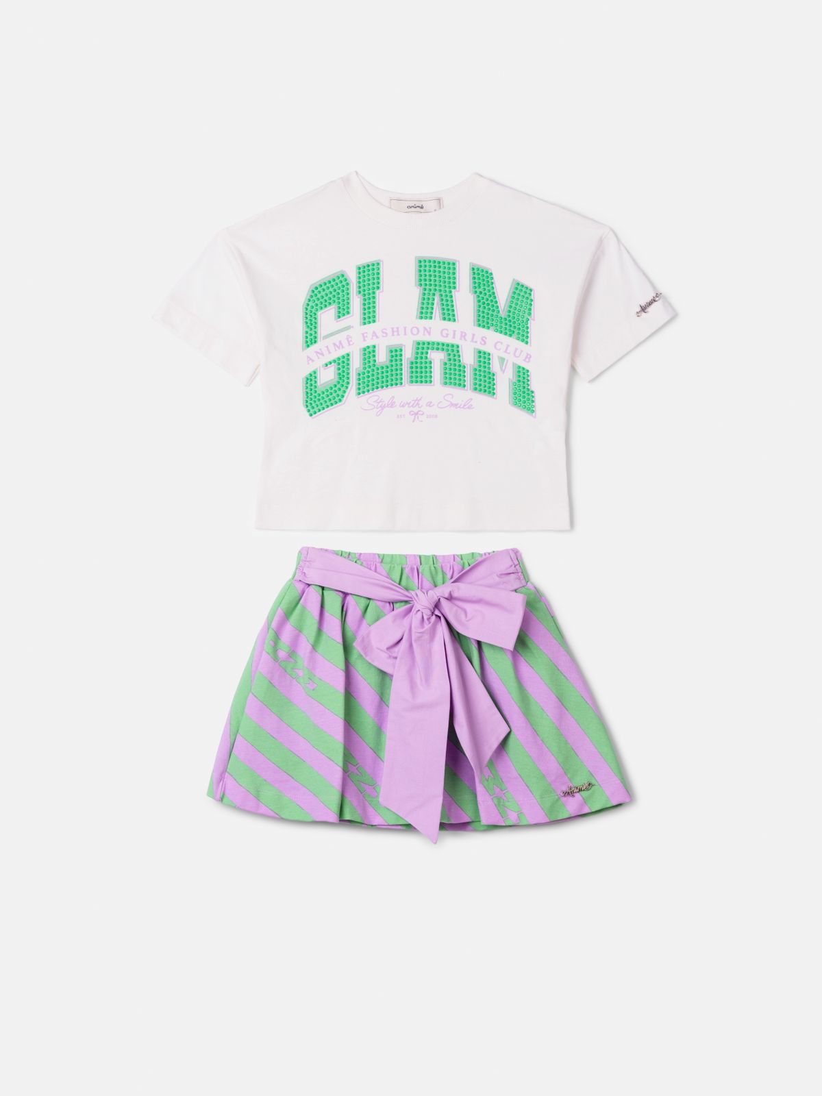 CONJUNTO GLAM COM LISTRAS E MAXI LAÇO