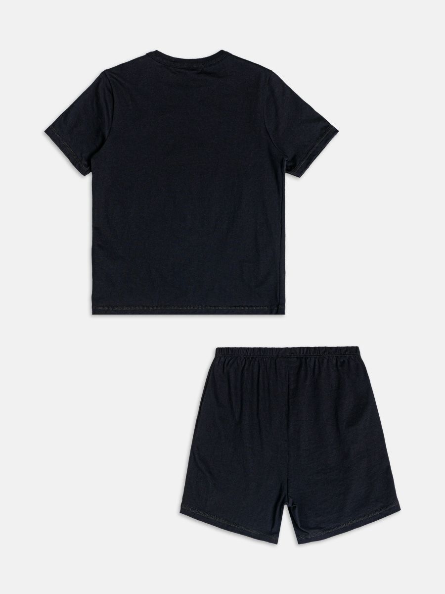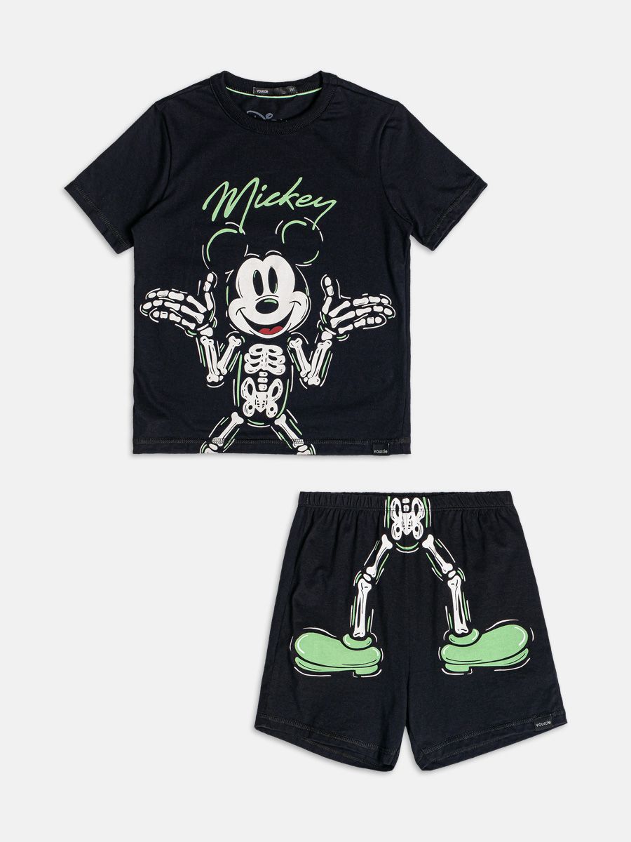 O pijama preto do Mickey Mouse é pura irreverência e diversão para as noites dos pequenos! A camiseta apresenta estampa frontal do Mickey com visual de esqueleto, em um efeito glow in the dark que brilha no escuro, tornando o momento do sono ainda mais divertido. O conjunto inclui shorts preto coordenado, garantindo conforto e liberdade de movimento para uma noite tranquila. Perfeito para quem adora dormir com estilo e quer transformar o ritual de dormir em uma aventura cheia de imaginação. Ref.: D2881