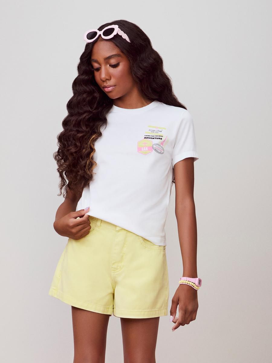 Estilo clean com personalidade: essa t-shirt off white aposta em estampa discreta para destacar a peça com leveza e versatilidade. Ideal para looks do dia a dia com informação de moda. Ref.: R5099