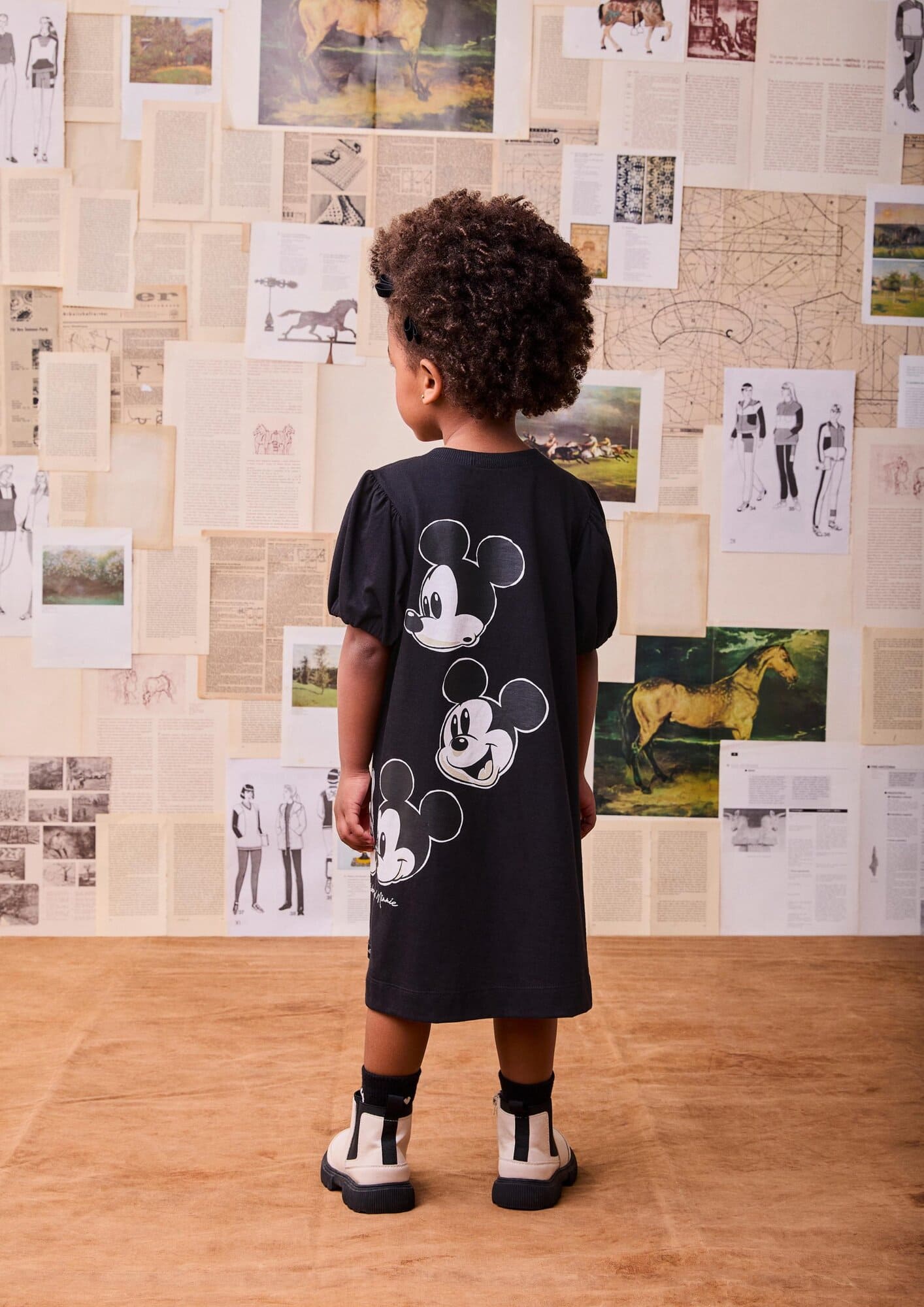 Um clássico repaginado para as fãs da Minnie e Mickey! O vestido preto tem estampa da personagem em um design sofisticado, com laços dourados em destaque. As mangas bufantes trazem um toque fashionista, tornando essa peça perfeita para momentos cheios de estilo. Ref.: P6004
