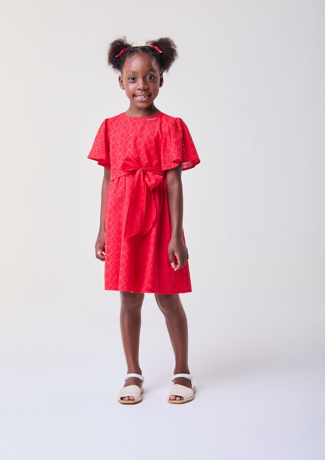 Um verdadeiro charme para ocasiões especiais! O Vestido Laço Encanto da Eu Amo Bimbi chega para trazer delicadeza e sofisticação ao guarda-roupa das pequenas. Confeccionado em tecido 100% algodão com detalhes bordados delicados, ele possui modelagem soltinha, mangas curtas estilo borboleta e um laço frontal ajustável que valoriza a cintura com muito estilo. A cor vermelha vibrante traz alegria e presença, enquanto o acabamento com bordadinhos florais e o toque suave garantem conforto o dia todo. Ref.: FA361